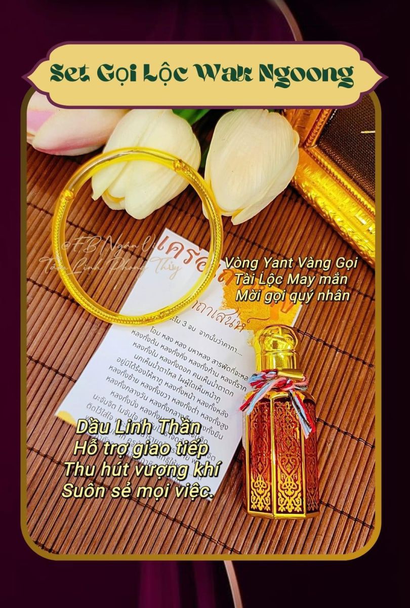 Phép có 2 dòng “ Dầu Linh Thần gọi Tài Lộc ” và “ Vòng Yant May Mắn ” - phép có thể đeo - thoa body hoặc mang theo trong túi xách, ngoài ra đây là dòng có thể để trong túi quần hoặc túi áo, để túi bên trái hoặc bên phải sẽ có lợi ích riêng.